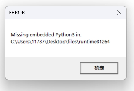 找不到重要组件 / Missing embedded Python3,有时会被杀毒软件杀掉,请添加信任并重新下载解压。