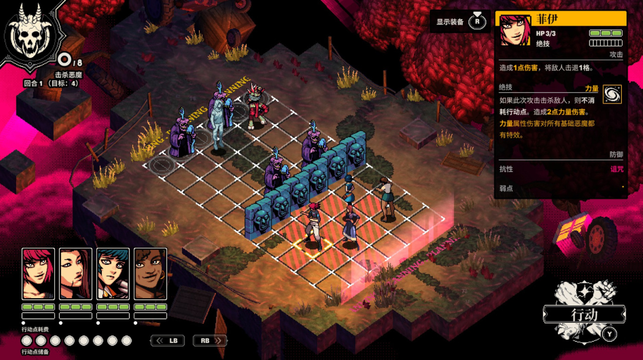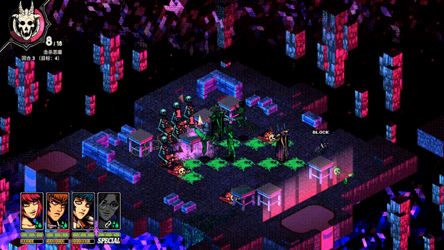 幽靈惡魔則只需鎖定隱藏在人羣中的紅色本體即可。就像下一盤象棋殘局一樣,不僅需要識破敵人的攻擊機制,還要找到在儘可能短的回合內擊殺更多敵人的高效策略。