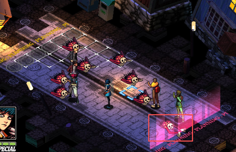 縱觀全局,是不是覺得很在下一盤國際象棋呢?畢竟它擁有一套棋盤應有的基礎規則和靈活的策略玩法。你既可以逐個個上去A敵人,也可以將敵人逼退到特定格子,使他們排列成整齊的橫排/豎排/斜排的陣型,然後再換到下一個角色將它們一併帶走。