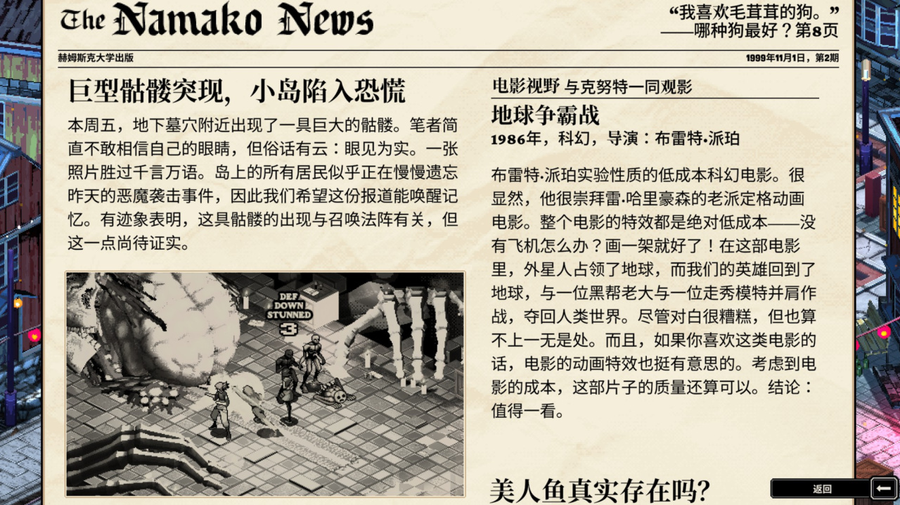 上一週所擊潰的boss,週一就會刊登於報紙上,也對應着此刻的日期爲1999年11月