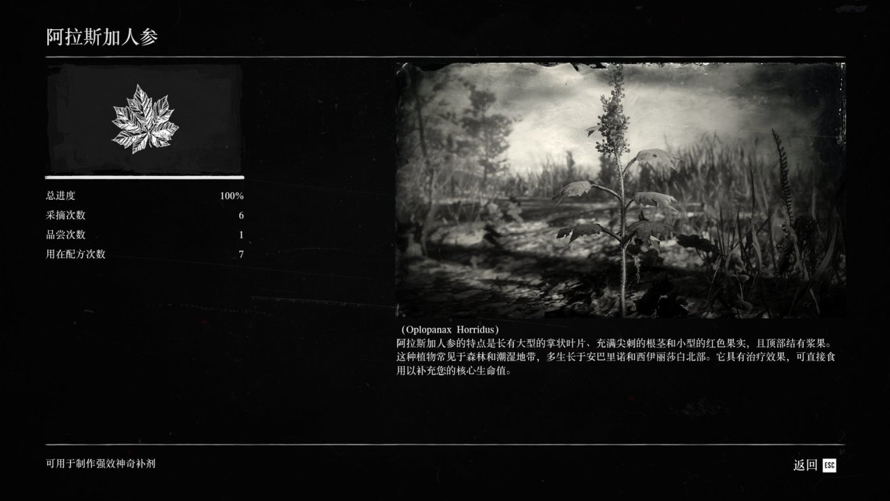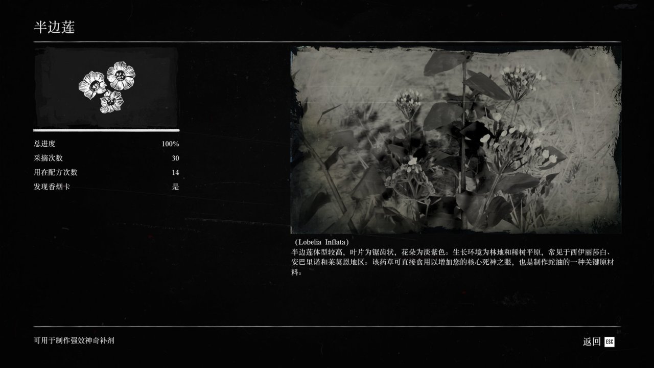 以阿拉斯加人参和半边莲为例如下图,想要某个草药达到100%进度,在采摘的时候就多摘几个用于制作。如果不在意,可以忽略。