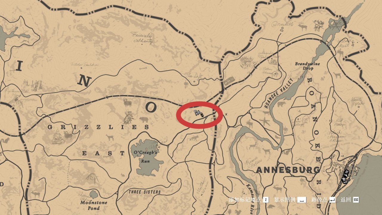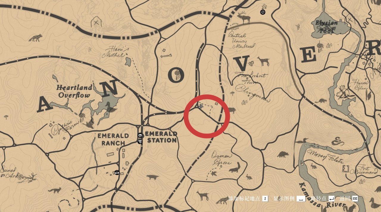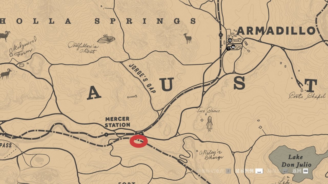 位置2: 老兵农场北面,铁路下面,字母O右边边,右边铁路护栏上写着安巴里诺英文