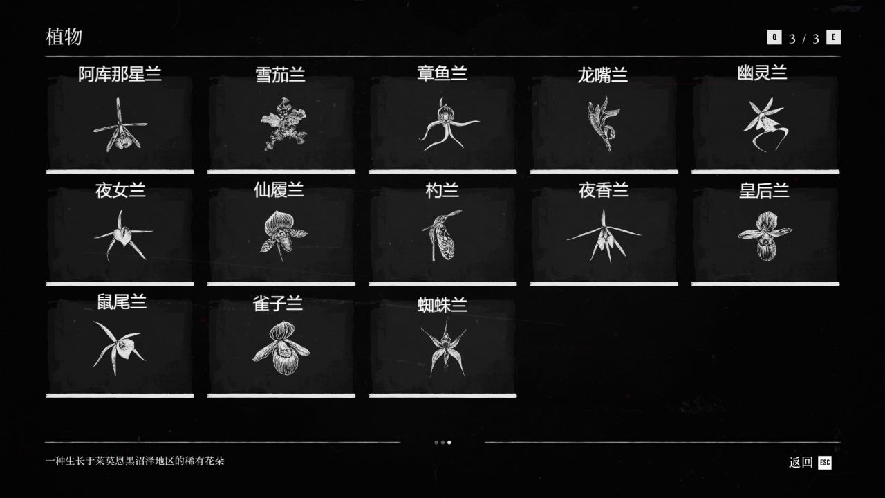 1.兰花“bug”,游戏设定兰花在异宝任务解锁前,不会刷够数量,比如皇后兰,龙嘴兰都需要5个,前期只刷4个。所有如果想在第二章养老,做完草药挑战,最好在解锁草药9之前,不要摘兰花,特别是阿库那星兰。当异宝任务做完后,兰花就和其他草药一样,常态化刷新。