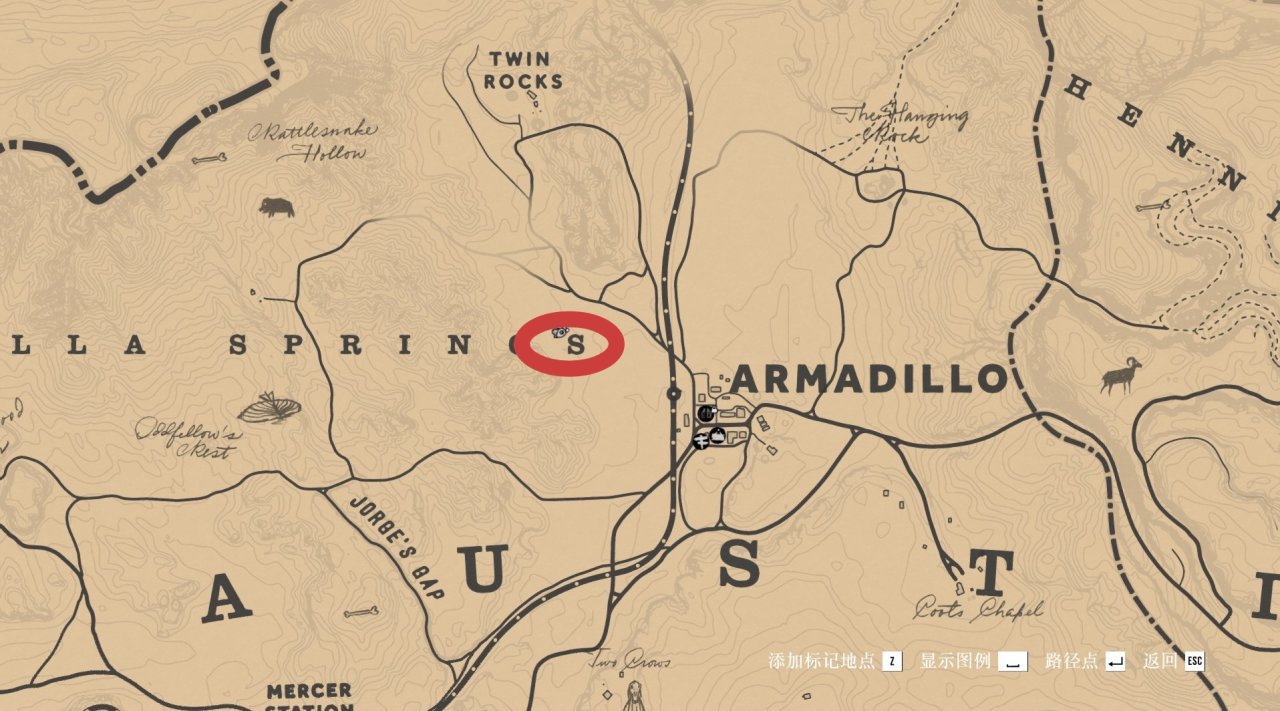 字母B旁边,这里可以直接骑马来,没救西恩,不会刷平克顿,进来摘了就走。