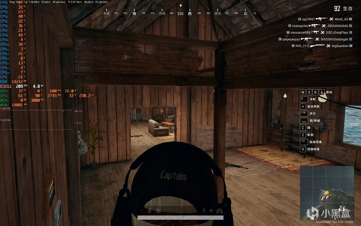 ▼室内游戏帧数,光影略复杂一些,游戏帧数略有下降,在209帧左右,很流畅。