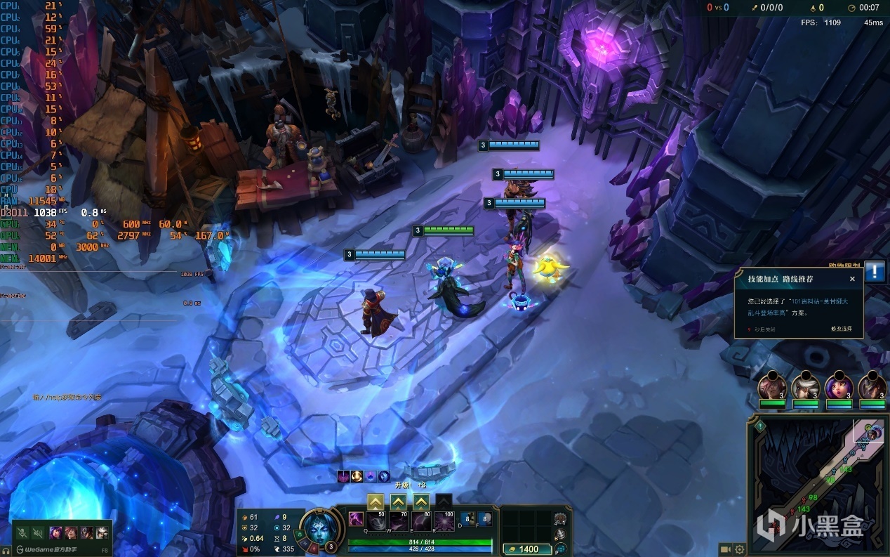▼游戏实测,LOL大乱斗,2K分辨率,全极高画质,游戏帧数超高,轻松超过1000帧。