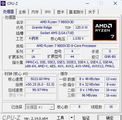 ▼这颗9800X3D,拥有8个大核、16线程,三级缓存96MB,超大。普通的9700X处理器,三级缓存仅有32MB,9800X3D是其三倍。