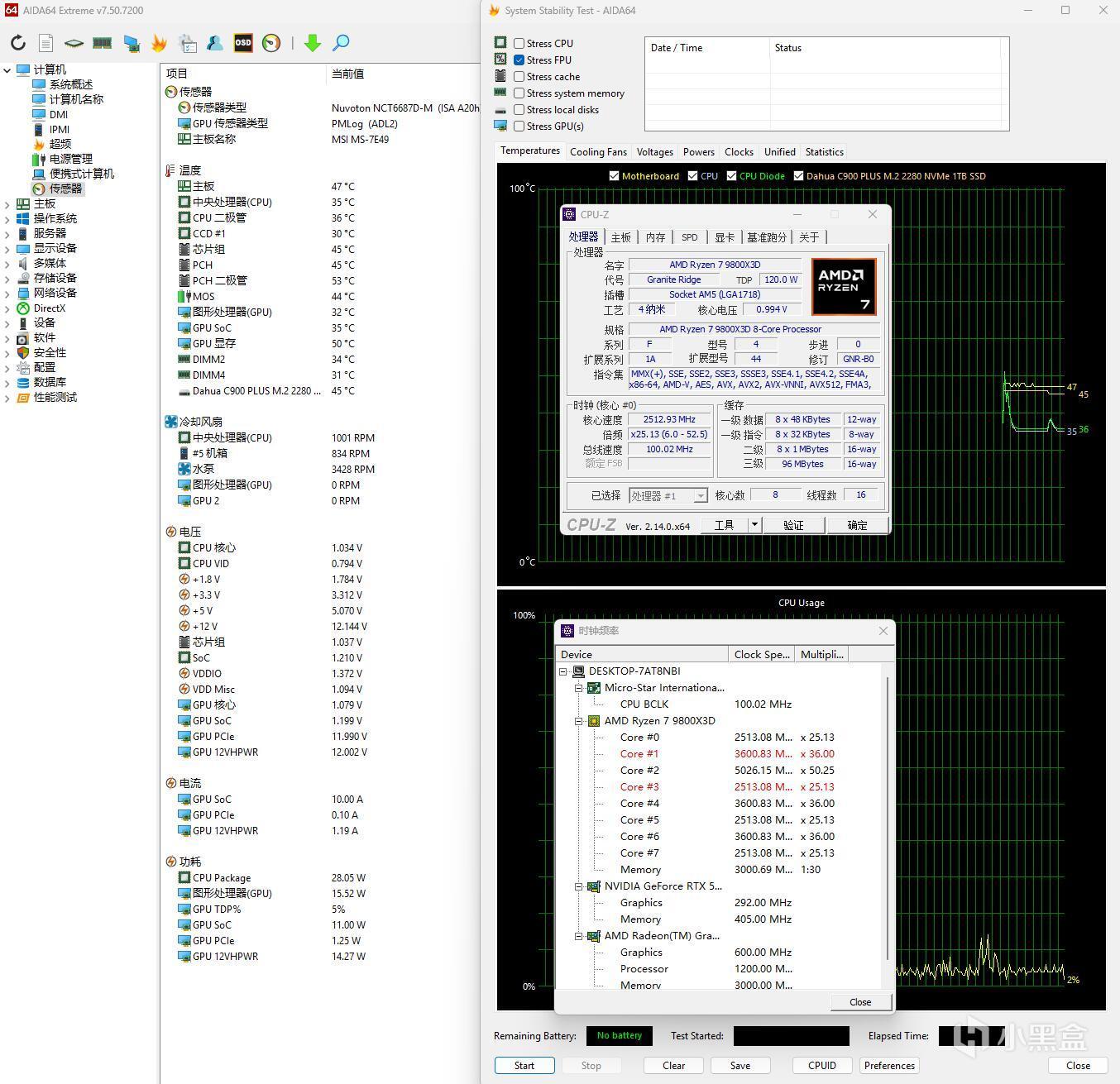 ▼AMD的这颗9800X3D处理器的发热并不大,但这里依然使用微星的MAG冰刃A15一体式水冷,可以轻松把9800X3D的温度控制在合理的范围。