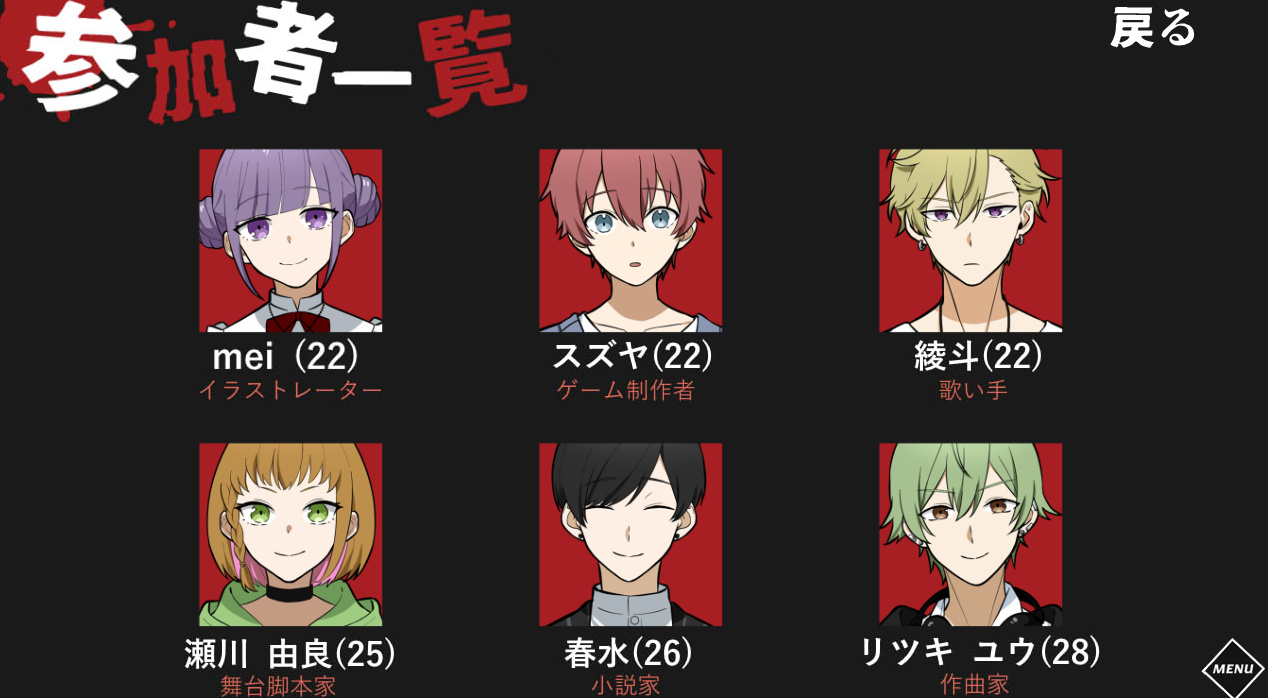 有小说家,游戏制作者,舞台剧本家,作曲家,歌手等,(六人中4男2女)