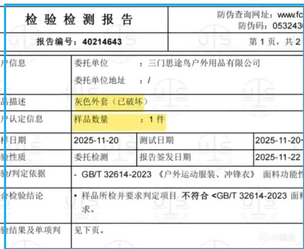 至于防水性争议,博主后续提供的检测报告明确标注 “已破坏样品数量不足”“本报告不具有对社会证明作用”,并非标准整衣测试,而影视飓风出示的国标 GB/T 32614-2023 检测报告则显示防水等指标全部合格。