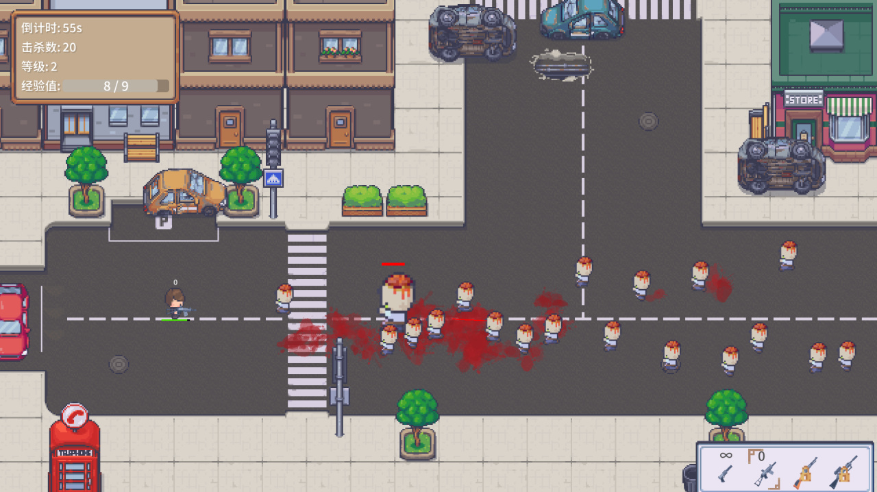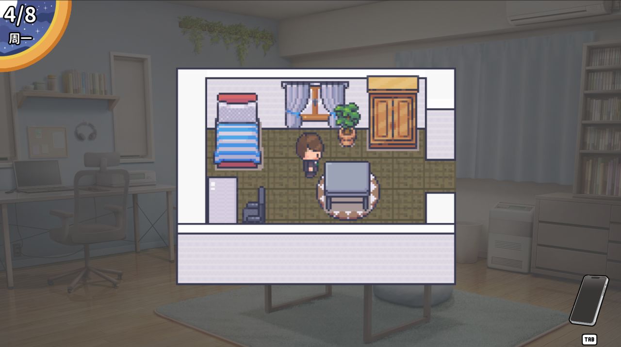 制作者往游戏的工作里塞了个自制的简单的类幸存者游戏,每击杀1个僵尸主角就能得到100元(美其名曰游戏代肝),但本作的金钱除了购买剧情道具并没有什么特殊作用,只是刷钱的话把等级打满的钱是肯定够的。