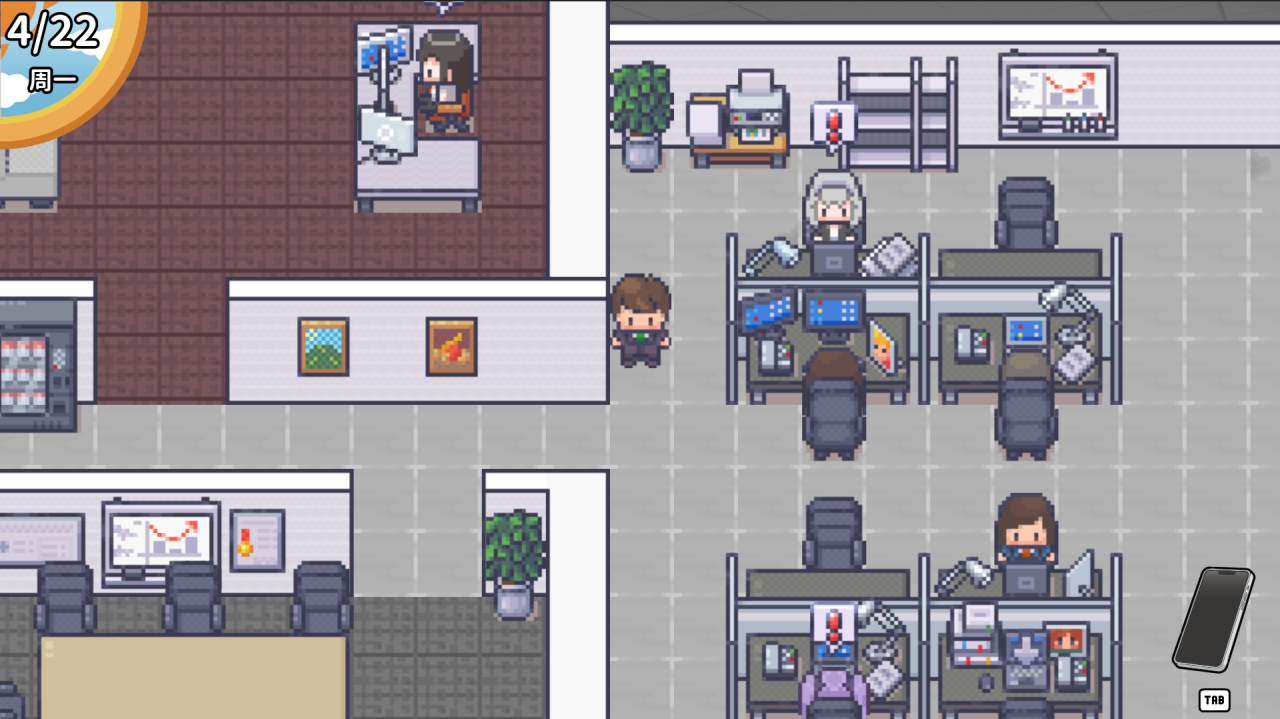 每天上班前可用选择一名头顶上有红色叹号的女主互动,交谈完后回到工位工作完后就会触发对应角色的剧情,当人物头上没有感叹号时,可能是缺少对应的道具(可在通讯录查看道具需求),或者在该时间点内没有更多这名角色的剧情,此时只需工位摸鱼或是推进其他女主角的剧情等待对应时间触发剧情即可。