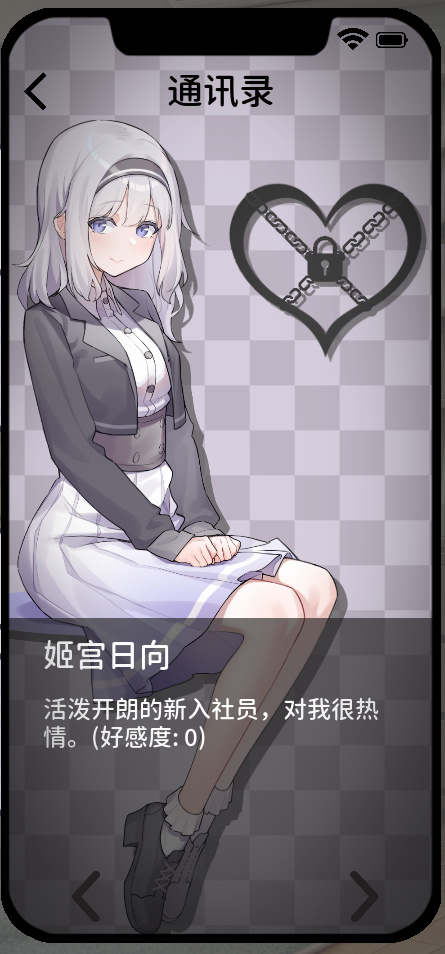 通讯录的心形图标和说明文字也会随着玩家的推进进度与路线选择产生不同的变化。