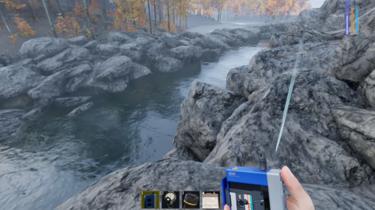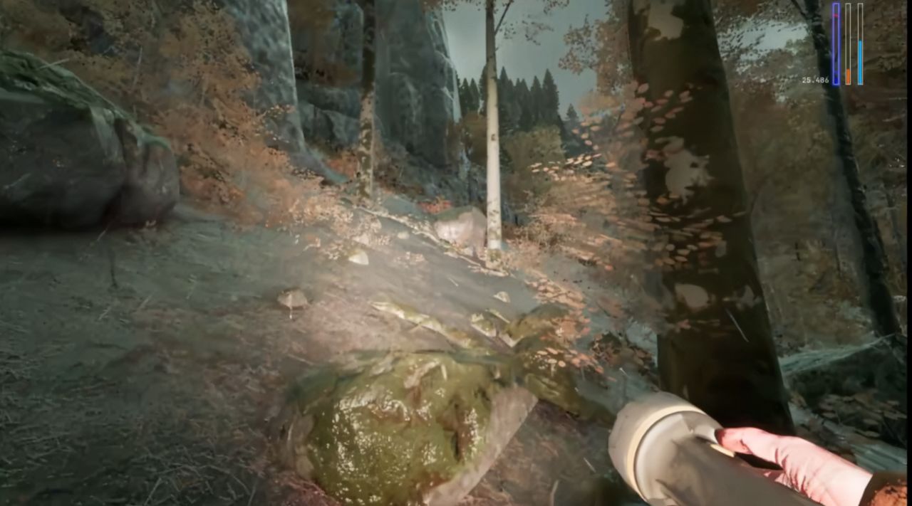 而驱使你探索的另一个核心,当然就是本作中的美景。虽然提供了多种超分辨率选项和帧生成,但是本作依旧不是画质最出色的那个梯队。确实,从过往履历上卡,《DayZ》《H1Z1》和《PUBG》都不是画质出众的游戏,但是本作用独特的造景和色调依旧可以塑造壮丽的美景。高至三四十余米的云杉,怪石嶙峋的河岸,高随机性AI造景的优势正在于你的每次旅途都能见到一些全新全异的美景。