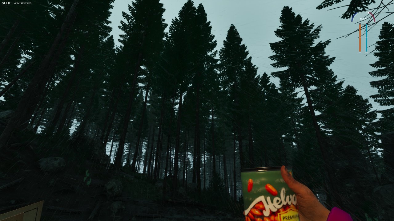 比如——如何在渡河的时候保持衣物干燥?不妨先脱下装进背包,干燥的衣物会让你稍后体温回复得更快;如果地图初期就为你带来了一场大雨,那么直接下一个存档再见吧,即使没有淋雨,没有保暖衣物的情况下也会因为环境温度逐渐失温,初期的鞋子也无法应对泥泞。总而言之,这套系统带来了更拟真和驱动探索欲的体验。