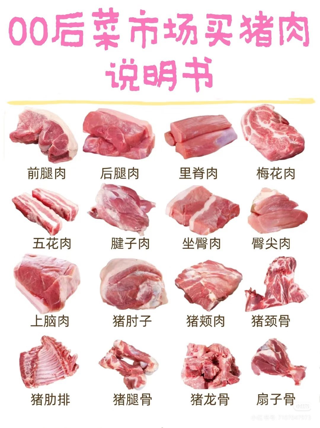 很多人第一次去菜市场买猪肉,面对肉摊上各种名字的部位,可能会分不清该怎么选。下面具体说说不同部位的特点和适用做法,帮大家挑对肉: