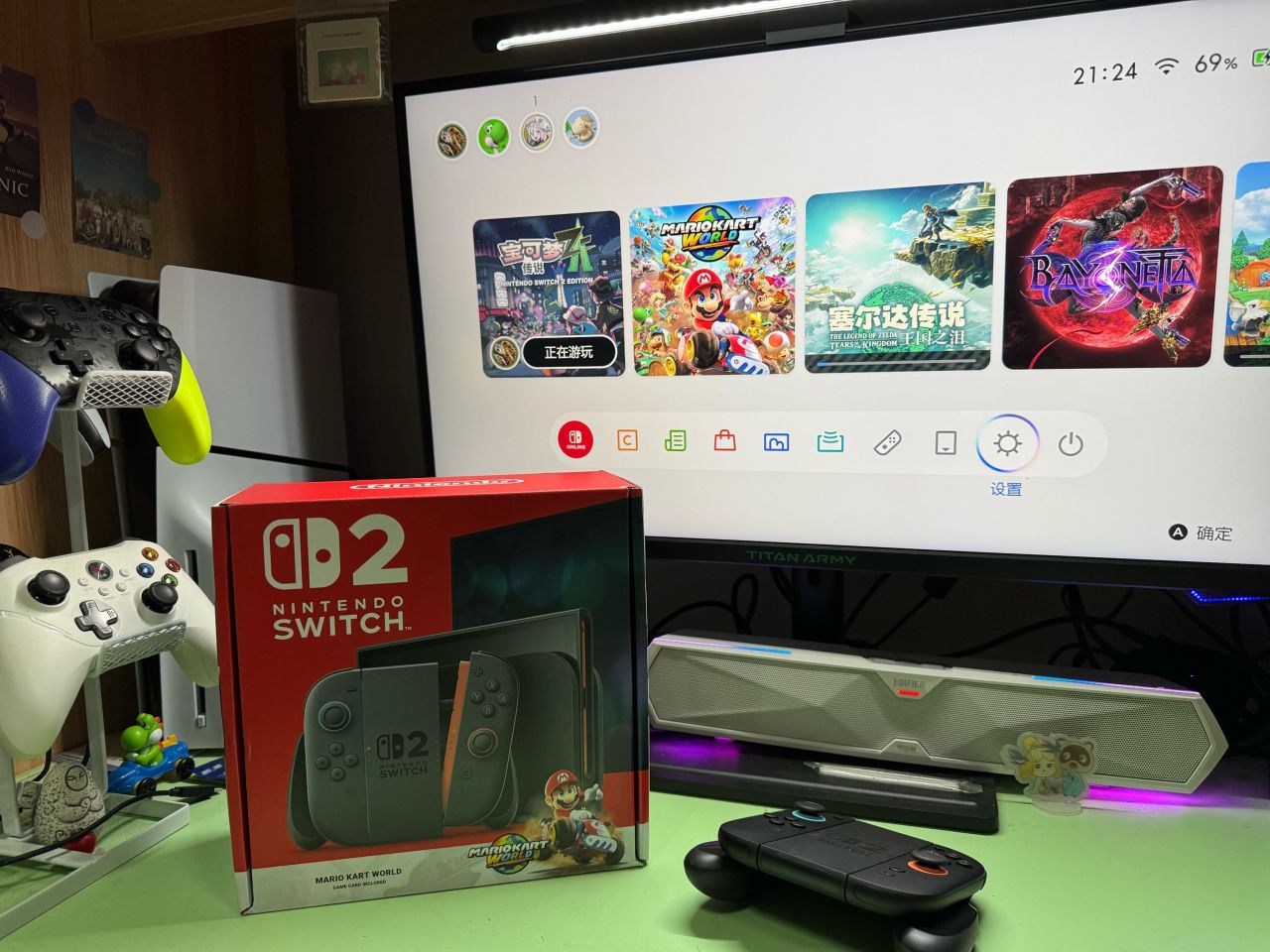 主包攒不下钱,看到心心念念的游戏机降价也是第一时间购入,目前购入ns2已经体验将近一个月,游玩了《马里奥赛车 世界》《咚奇刚 蕉力全开》《宝可梦传说ZA》《塞尔达传说 王国之泪升级版》这四款游戏,游戏时长共60h左右,下面我和大家分享这部新世代主机的使用感受。