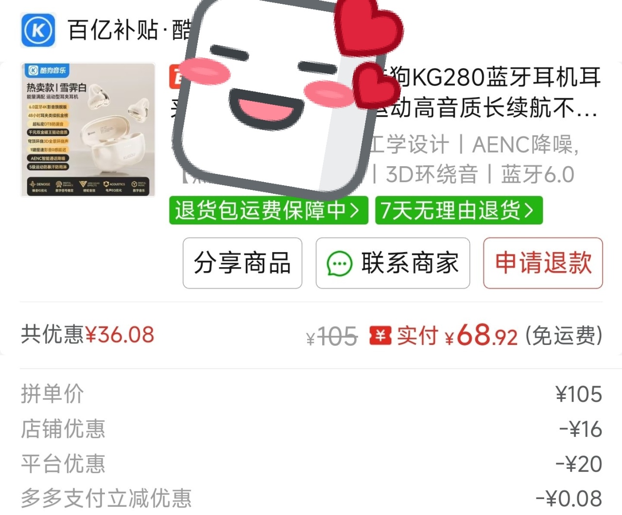 最近想跑步买个运动耳机也是用这样的操作加上pdd最近有一个v3无门槛劵弄便宜不少感觉这波价格太香了。
