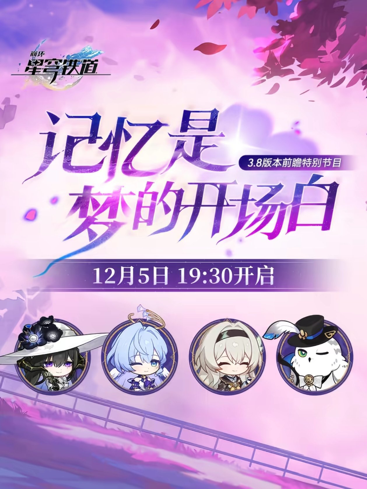 《崩壞:星穹鐵道》3.8版本「記憶是夢的開場白」前瞻特別節目將於12月5日19:30正式播出。