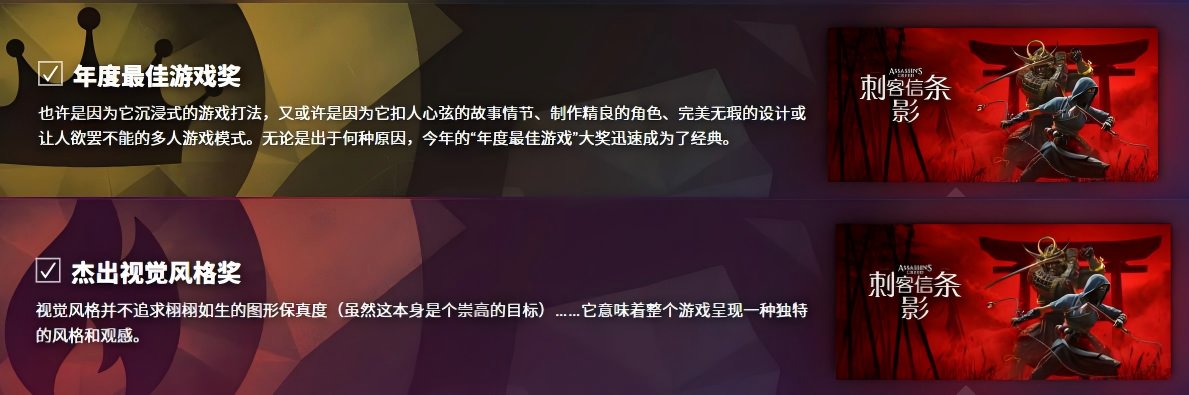 如果你也被上面的景色惊艳到,那么我强烈建议趁着 Steam 大奖投票期间,可以在最佳游戏/杰出视觉风格奖项上给《刺客信条:影》投上一票,毕竟育碧的美术功底真的是有目共睹的 ~