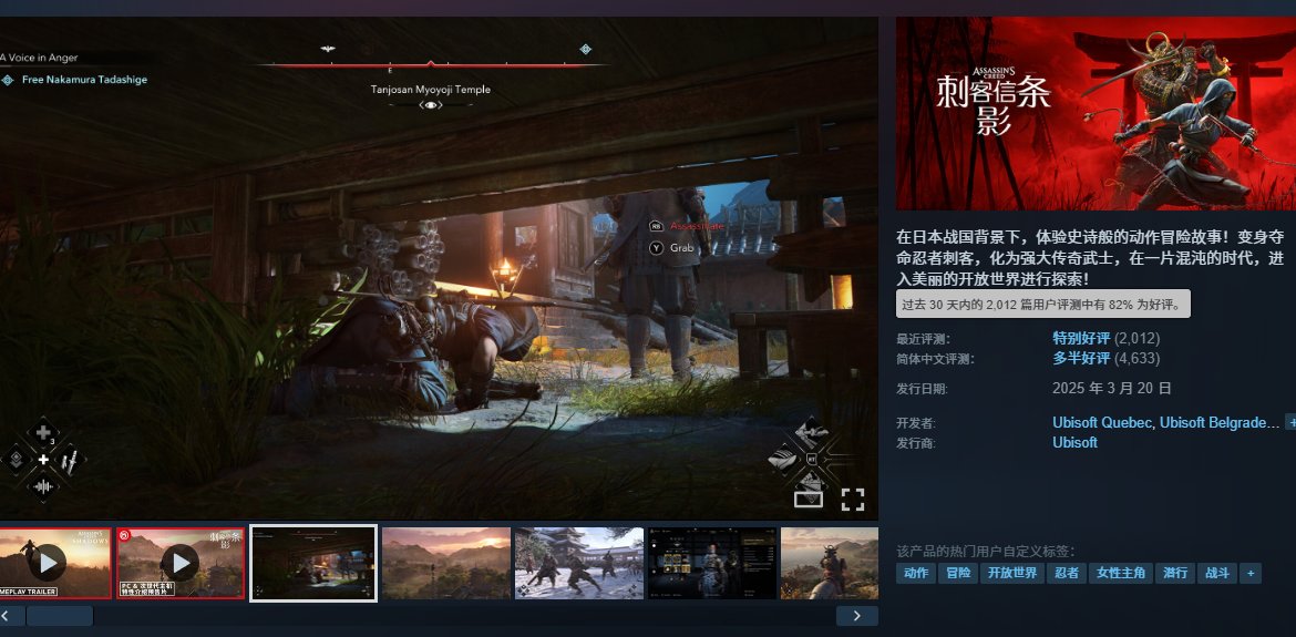 前期可能受到了一些网络节奏的影响,但是“是金子总会发光”这句话一点也不假。如今的《刺客信条:影》在 Steam 上的评价已经来到了“特别好评”👇 一款游戏到底好不好玩,时间真的会告诉你答案!