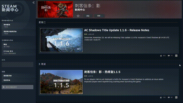 作为系列首款以日本战国时代为背景的正统续作,《刺客信条:影》自今年 3 月上市以来经历了多个版本的更新与优化。看着这些每隔一个月甚至半个月就推出的更新日志,作为玩家真的能感受到育碧对这款游戏的用心:
