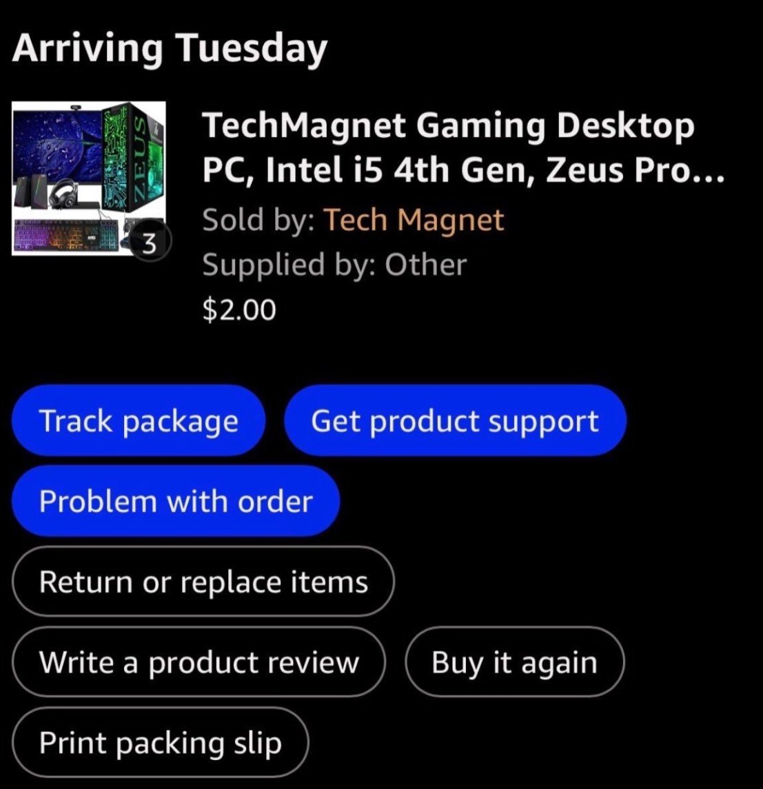 知名折扣追踪推主@GlitchedDeals近日以2美元(约14元人民币)的价格成功下单一台台式电脑,并分享了物流追踪记录证明交易真实有效。这台电脑标注配备Intel i5第四代处理器。