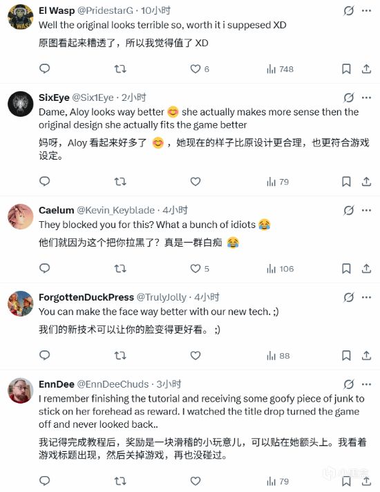 这场风波的起点要追溯到去年。彼时《地平线:西之绝境》发售不久,埃洛伊“写实硬朗”的外形设计引发大量玩家争议,不少人认为角色建模与系列世界观贴合,但也有玩家吐槽“面部线条过刚,缺乏美感”。就在这一背景下,博主@GameCharacterAI发布了AI重塑的埃洛伊形象——保留角色标志性的红发与坚毅气质,同时优化身材比例至“胸大腰细臀翘”的主流审美范畴,迅速收获玩家好评。而近日博主转发该旧帖时透露,这张图竟成了“导火索”:“发布后没几天,我发现自己被《地平线》官方账号拉黑了,在此之前还遭遇过好几次内容限流和临时封禁。”这一说法随即引发连锁反应,推文评论区迅速聚集超2万条留言,玩家立场呈现一边倒的支持态势。