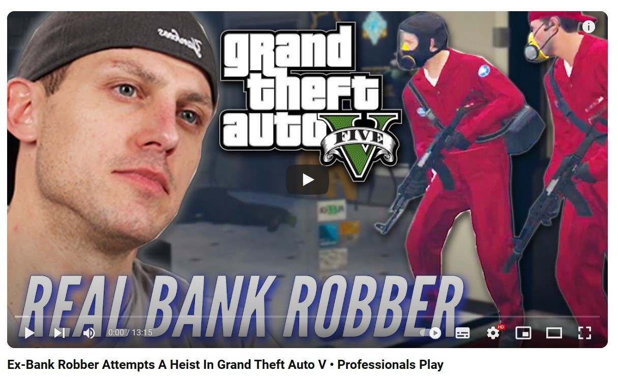 二十多年过去,出狱的他成为网红,被BuzzFeed Multiplayer频道邀请来进行游戏试玩,视频标题为「前银行劫匪玩《GTA5》」。