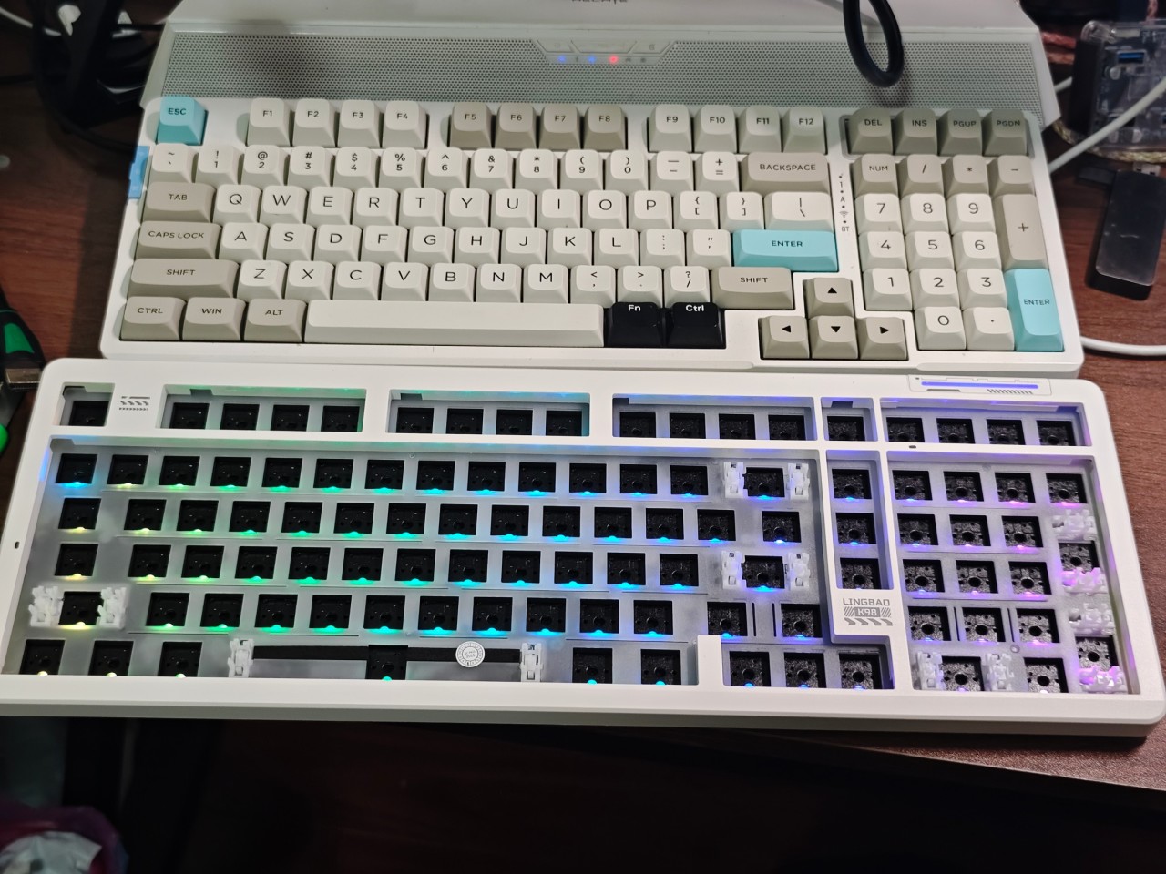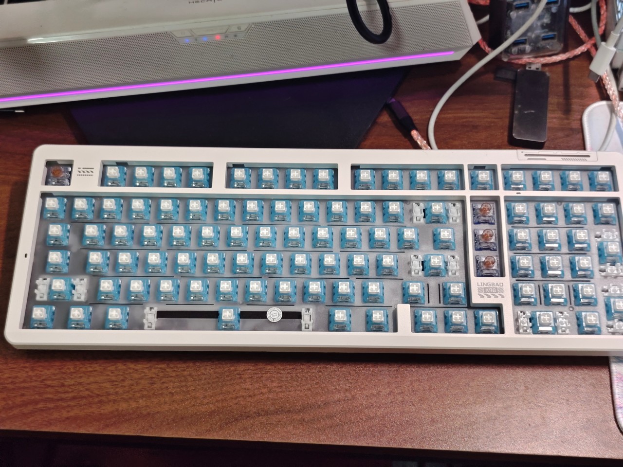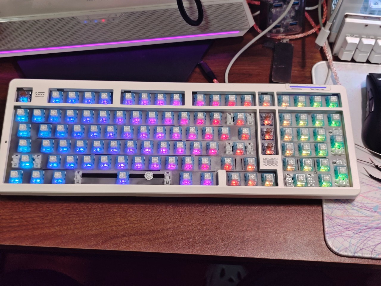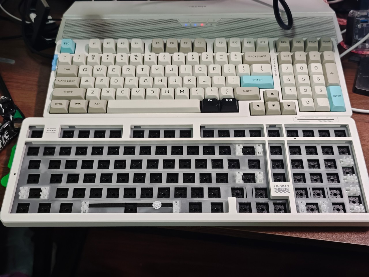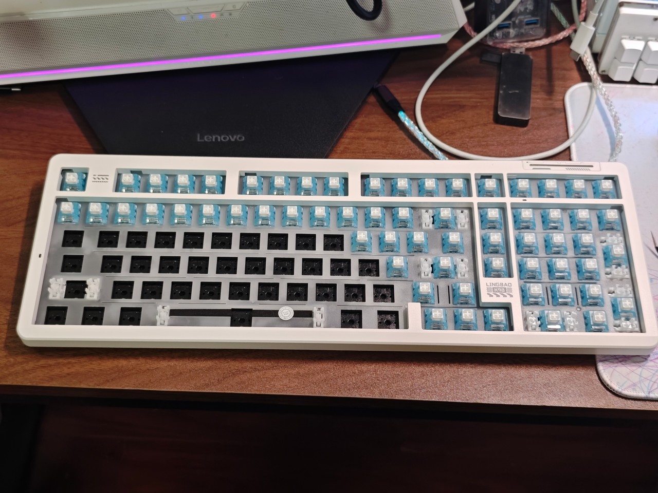 因为我既想用TTC烈焰红轴,又想用极地狐轴,段落轴和线性轴都要有。只有一把键盘相当麻烦,所以就拆整了一把凌豹K98 Pro作为套件(还是新的)