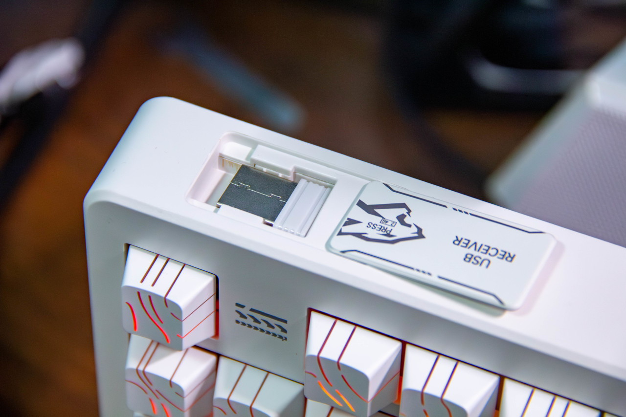 然后关于接收器,凌豹K98 Pro在后边有一个收纳仓,哎,这点好评。用的时候拿出来,不用的时候收起来,至少不会搞丢。