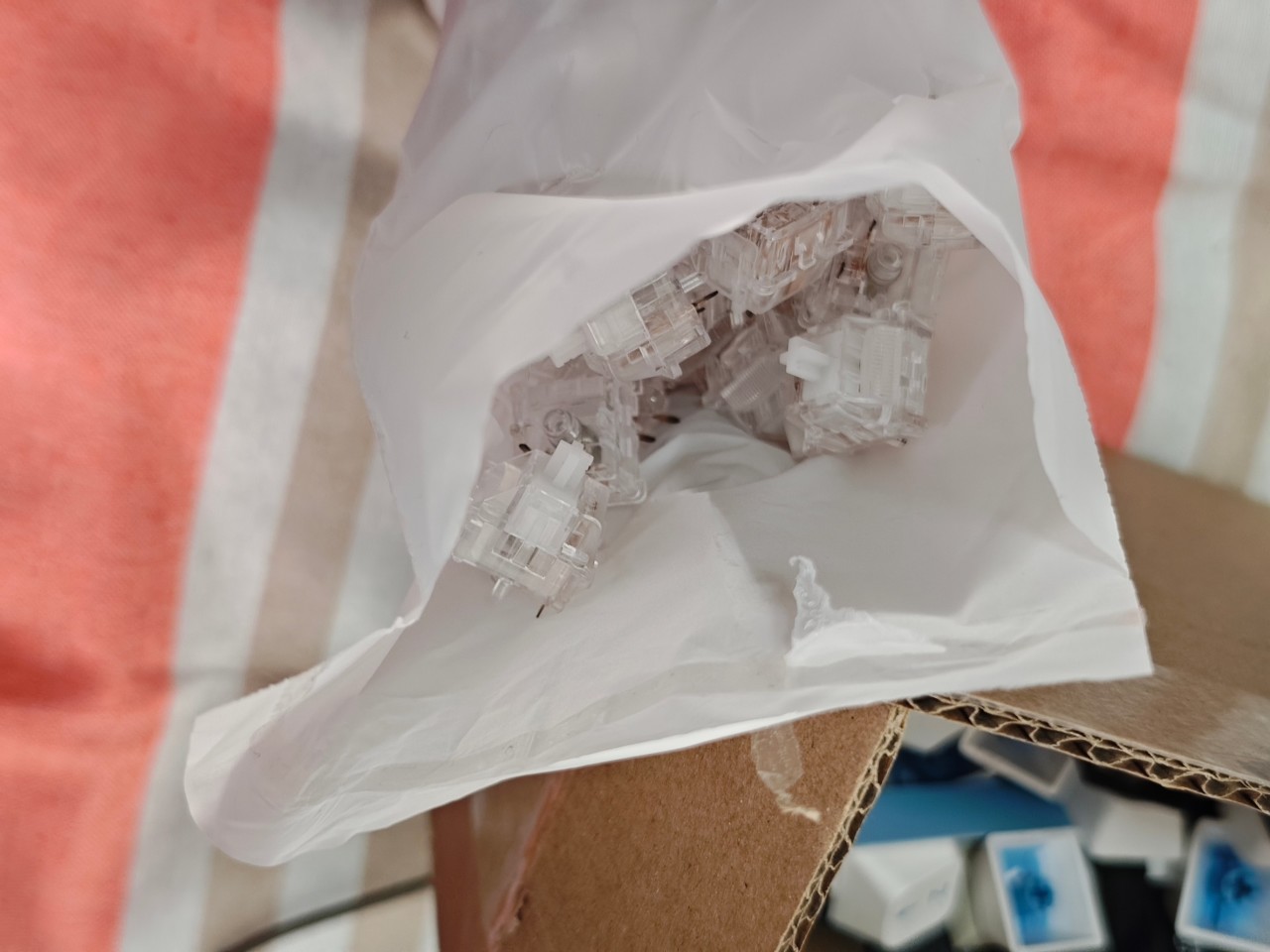这是准备好的极地狐键帽和极地狐轴,从我的V98Pro上拆下来的