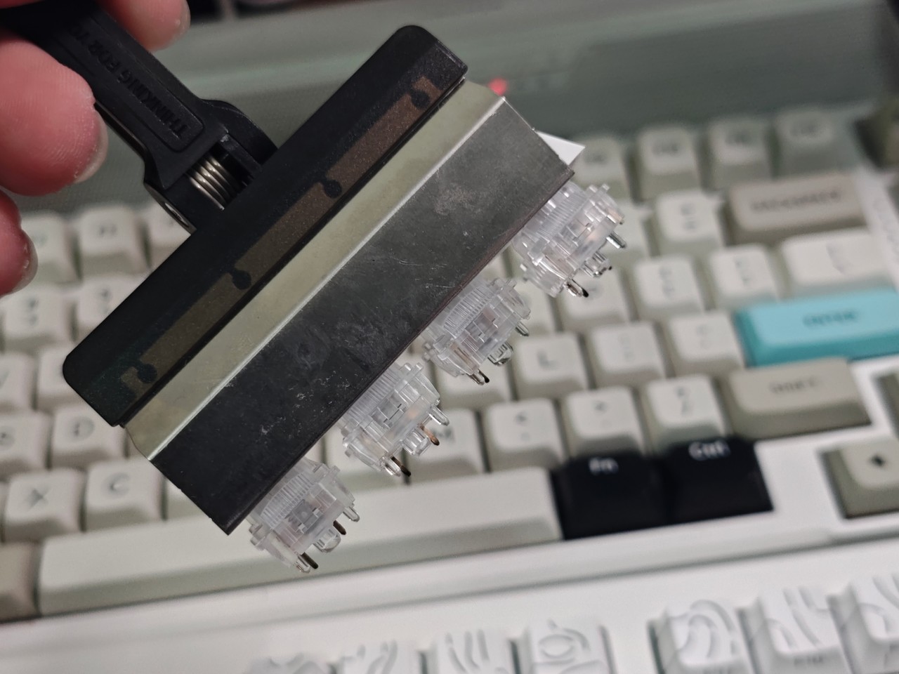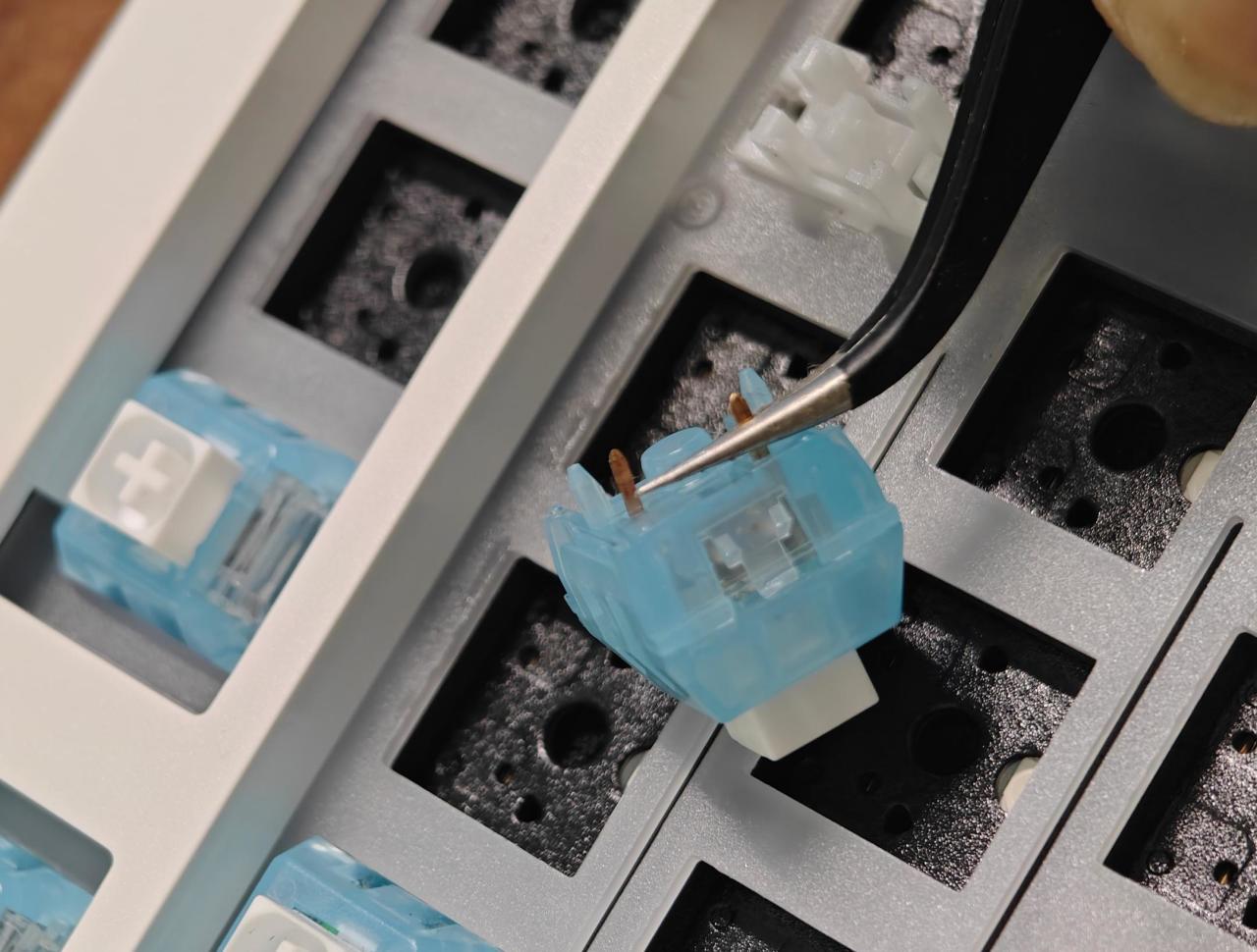 注意不要大力出奇迹,慢一点,慢慢施加力量,如果感到阻力,要停下来重新对准位置,不然就会像我一样把轴体弄跪脚了。