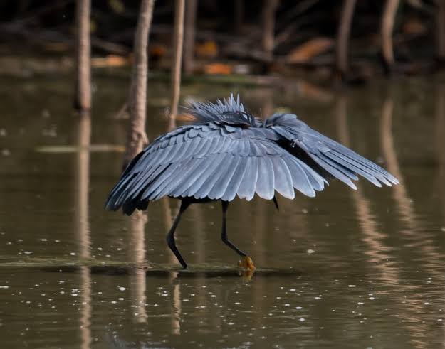 而在水中的鱼儿看来,黑鹭那黑色的翅膀轮廓,或许与岸边的阴影或是阴暗的洞穴别无二致,这无形间降低了它们的警惕性。