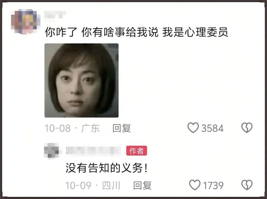 也难怪大家上网冲浪,看到那些家庭悲剧帖子或情感小作文,或者有伤心事戳到自己痛处,会借着呼叫“心理委员”的劲儿,集体寻求安慰。