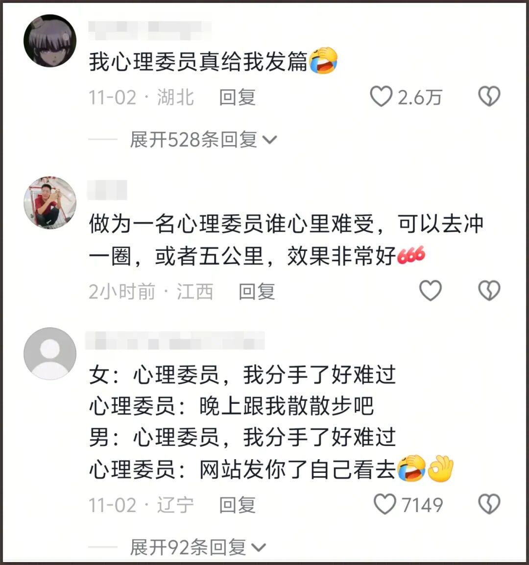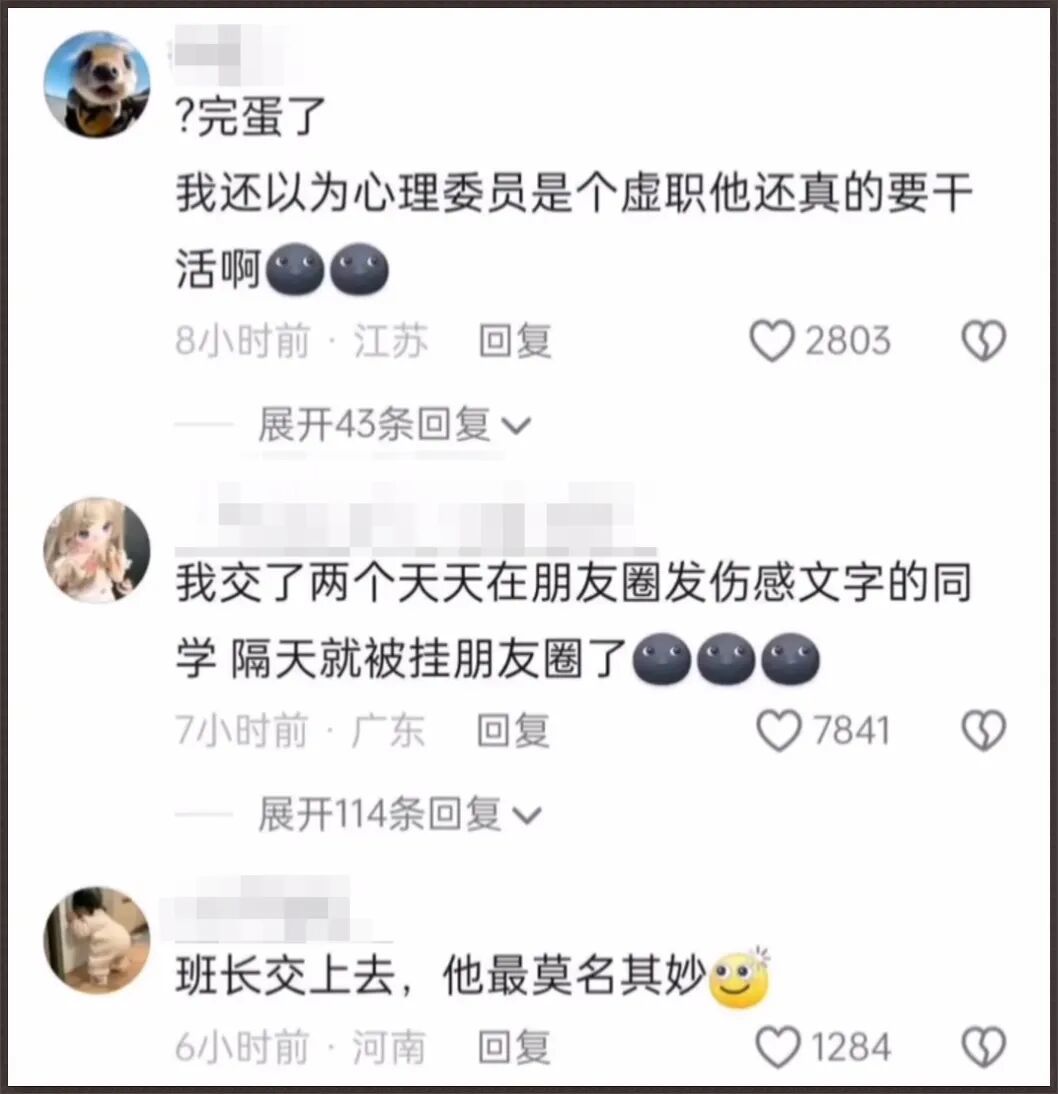本来我也以为是个虚职,应付学校任务罢了,结果发现有不少网友们表示,自己遇到的班里心理委员都挺称职的,很会哄人。