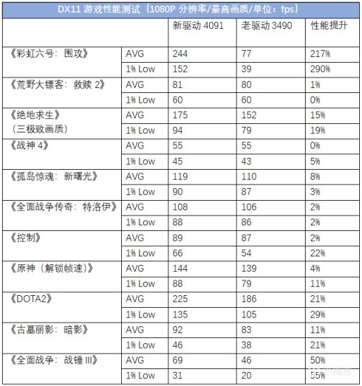 ▲新驅動優化了多款遊戲中的性能和兼容性表現