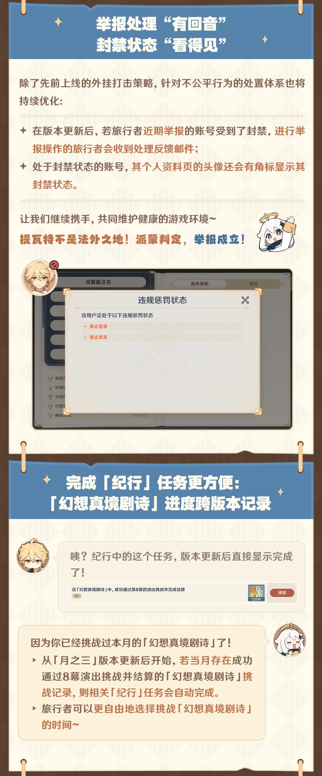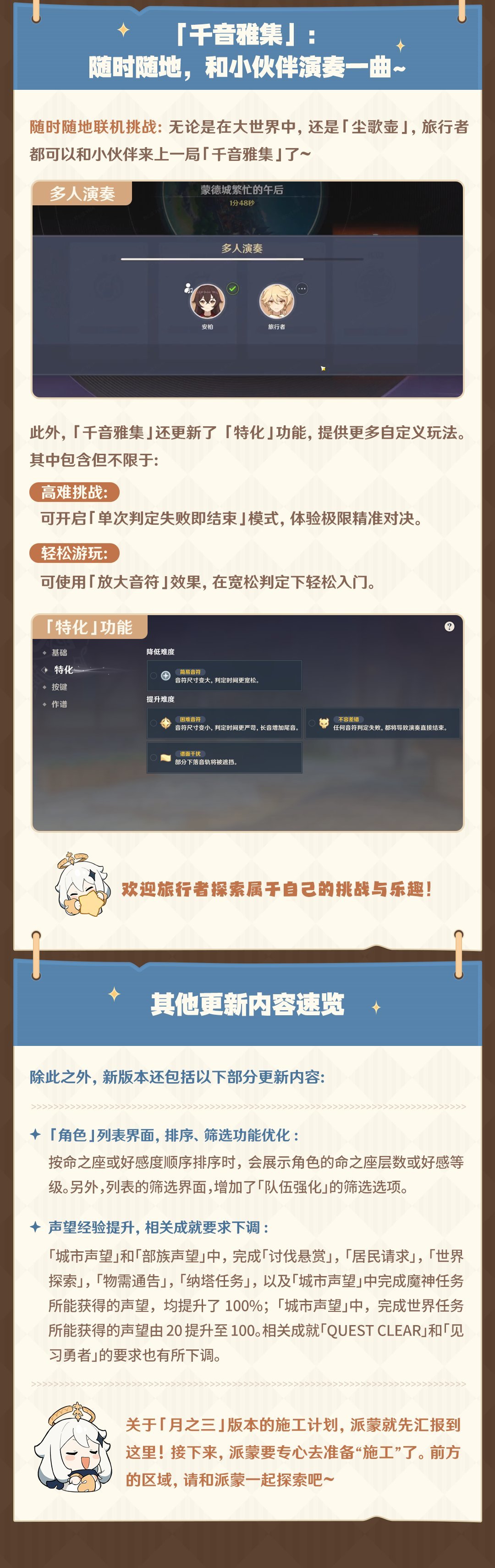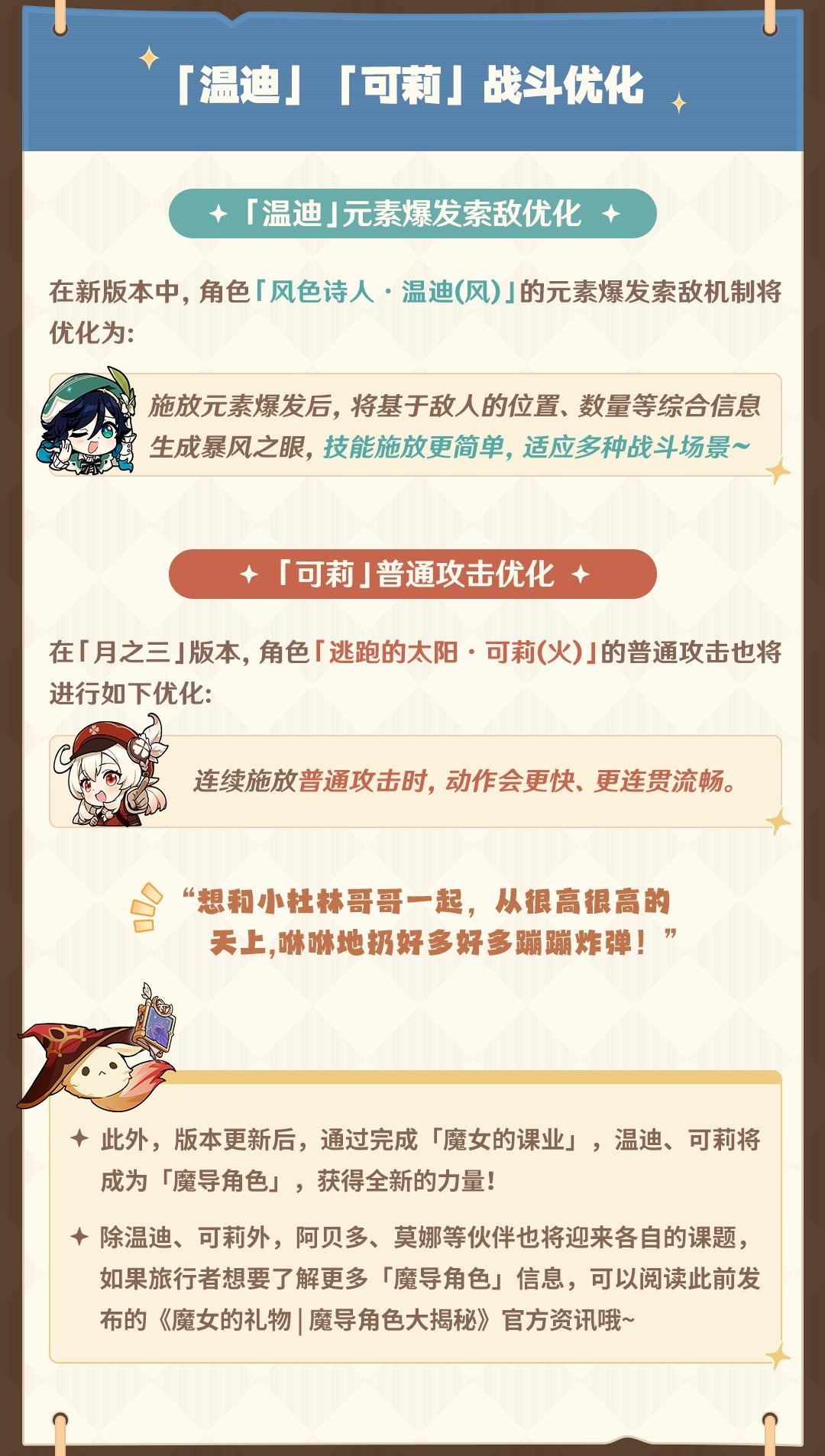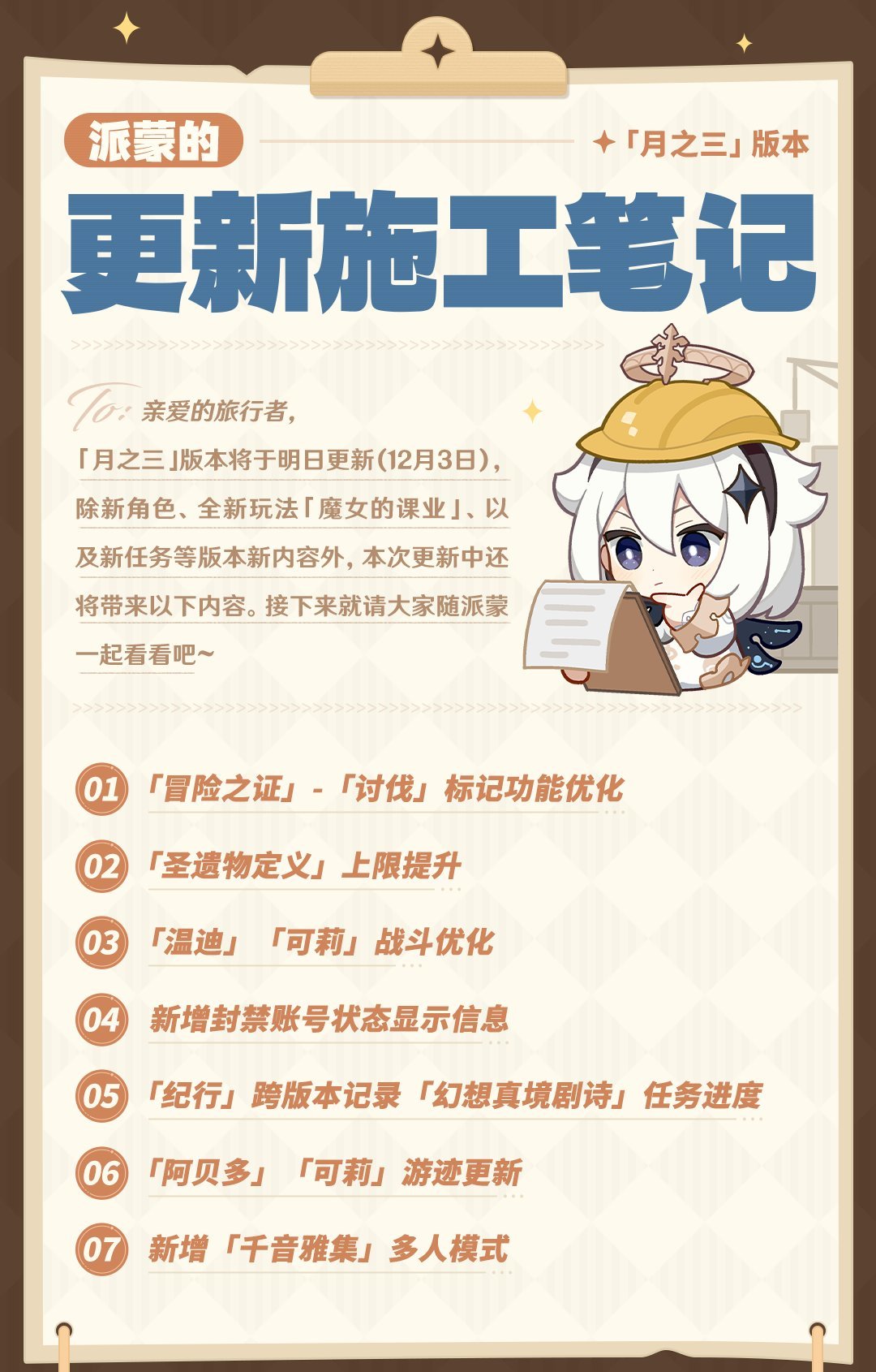「月之三」版本将于明日更新(12月3日),除新角色、全新玩法「魔女的课业」、以及新任务等版本新内容外,本次更新中还将带来以下优化内容。