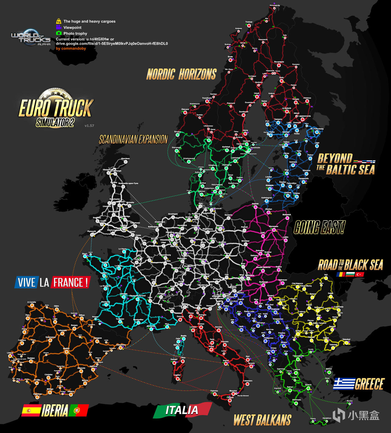 自北欧地平线路网公布以来,大佬Commandoby就开始制作1.57版本的地图了,快来看看目前欧卡2全地图有多大吧~