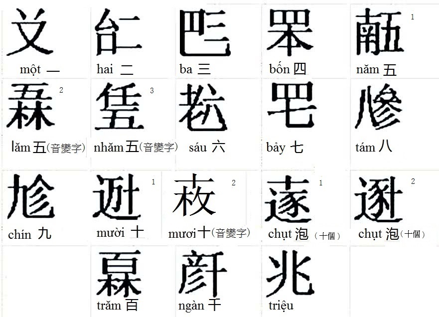 重點來了→喃字是越南古代爲適配本土語言創造的表音表意文字,核心邏輯堪稱漢字的縫合術:要麼將多個漢字拆偏旁、拼部件,要麼給漢字增刪筆畫、變形重構,最終形成全新字符。比如表示“人”的“𠊛”,由“人”與“㝵”拼接而成;表示“天”的“𡗶”,則是“天”的變體。(p2有1-10的喃字解釋,盒友們可以去看看)