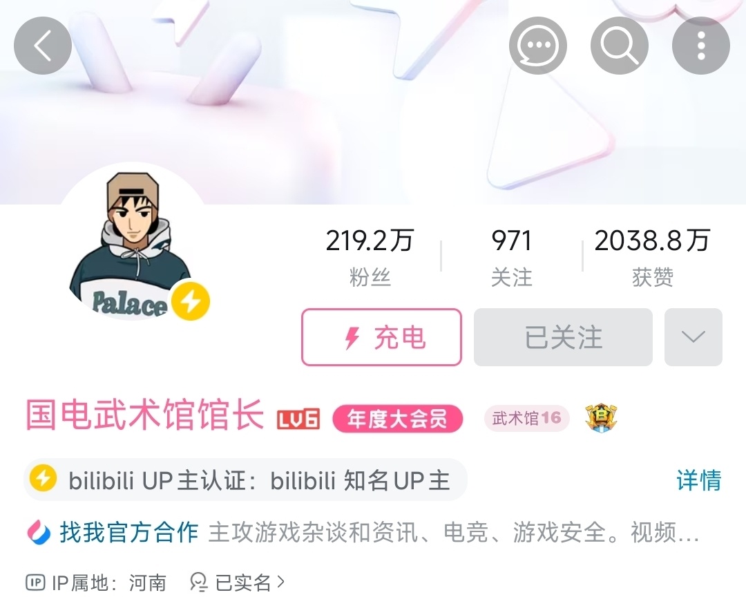 游戏区UP主,我比较喜欢看他的《搞笑电竞》系列,有很多电竞比赛时候发生的搞笑事故。