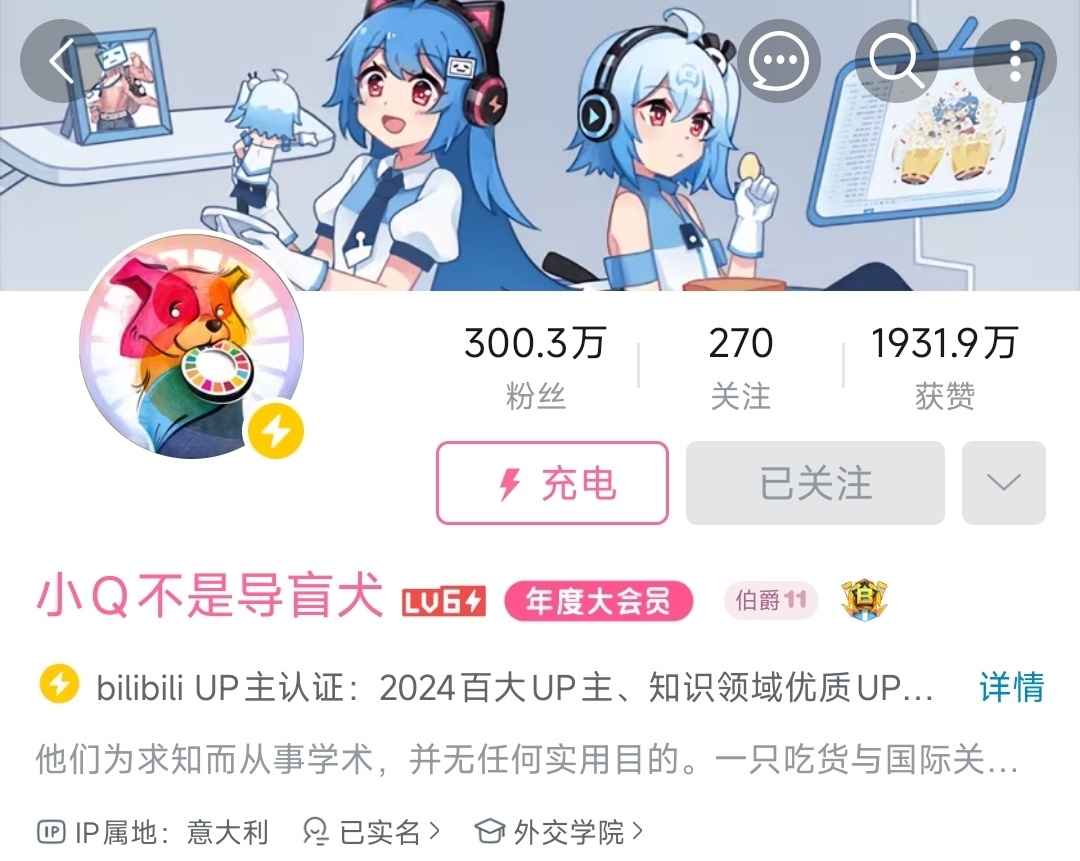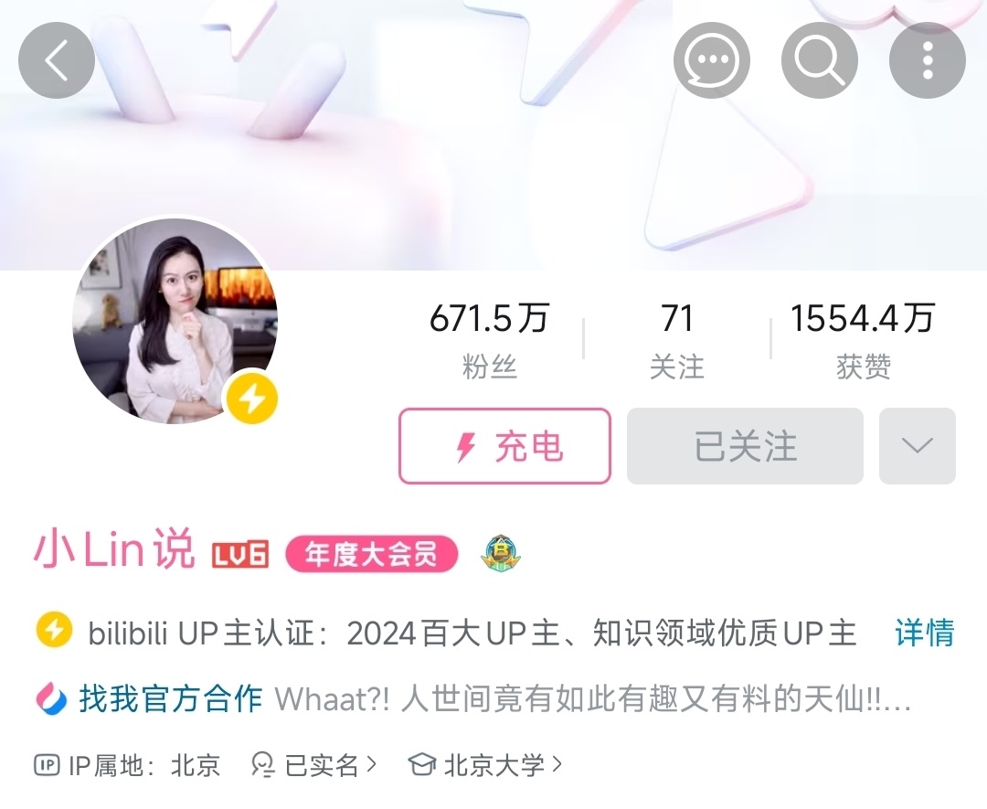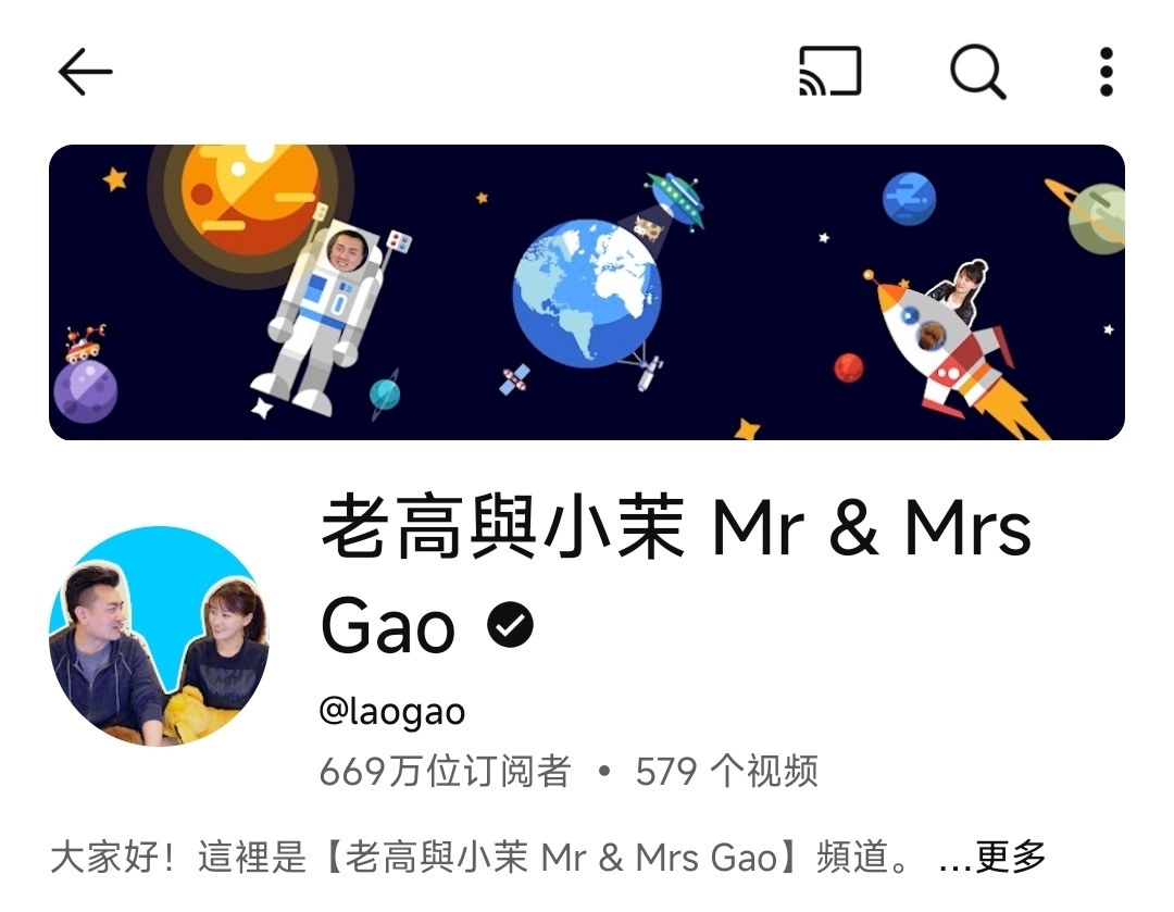 这个UP比较特殊,“老高与小茉”是油管的顶流科普博主,在海外华人当中很火,但他们在B站没有号,只有一些搬运他们视频的。上面这个UP是搬运账号里做得比较大的,我一般也看他的。