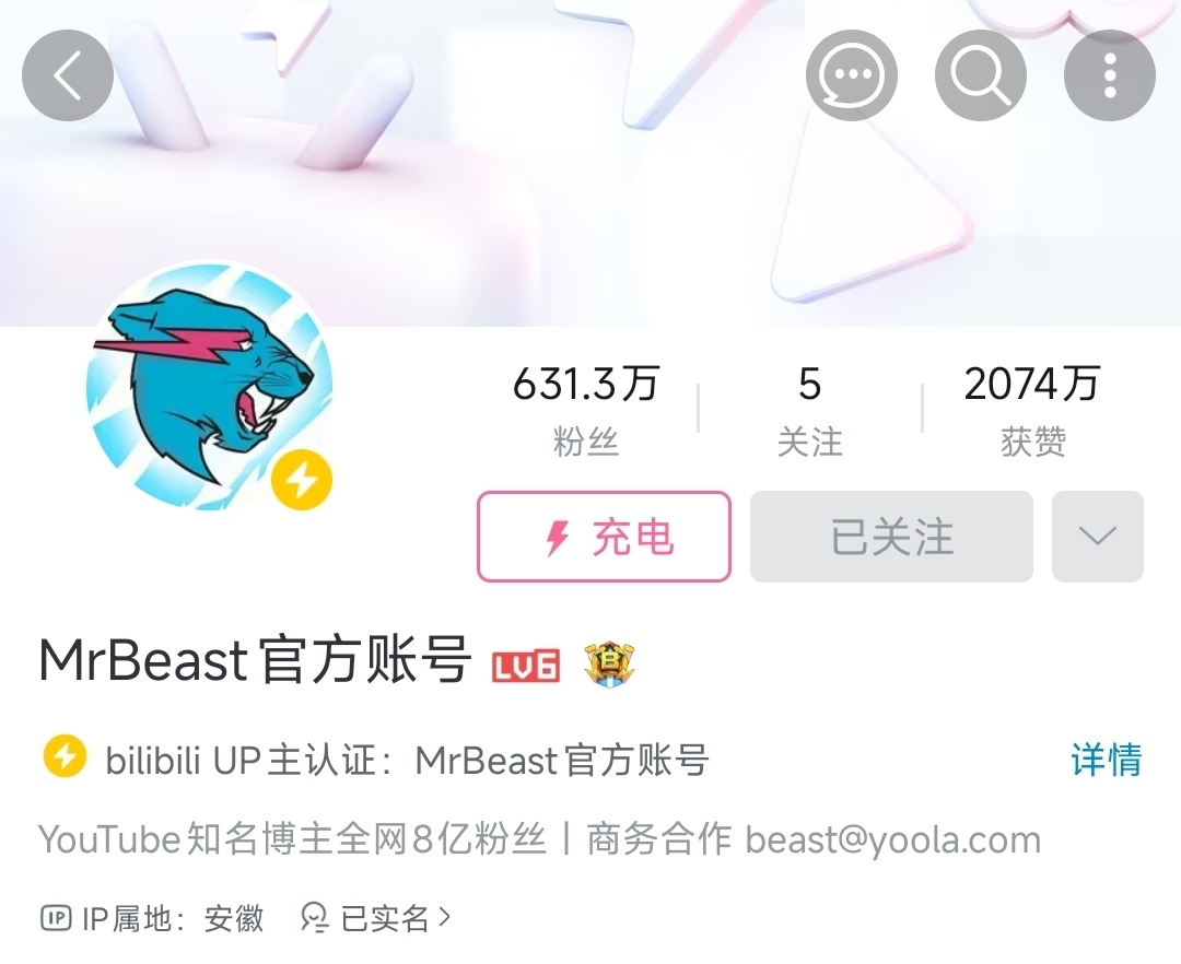 外网的顶流博主,经常豪掷千金做各种事情,之前还搞了真人版鱿鱼游戏,我记得入驻B站当天就破了百万粉。