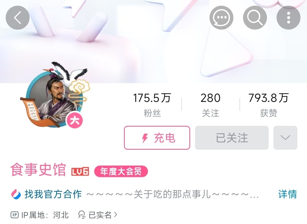 这个UP和赛博食录有点像,但主要是讲述某一类食物背后的文化演变,或者某一个时期的不同美食,基本聚焦于中外饮食史。