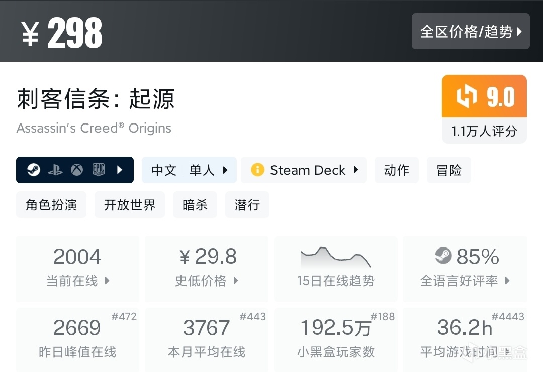神话三部曲第一部,埃及背景。建议黄金版包含DLC。打折的是育碧平台,steam上可以等冬促