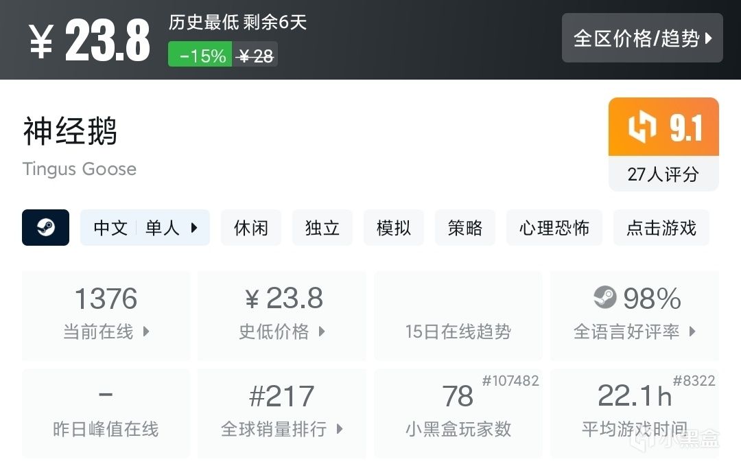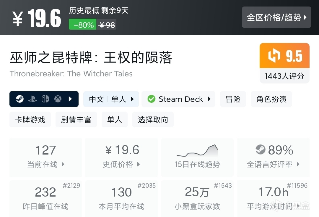 冬促还有两个多礼拜,这段时间应该慢慢会有厂商抢跑,对玩家而言,价格到位都好说。现在的新史低冬促背刺概率很低,放心入手。
