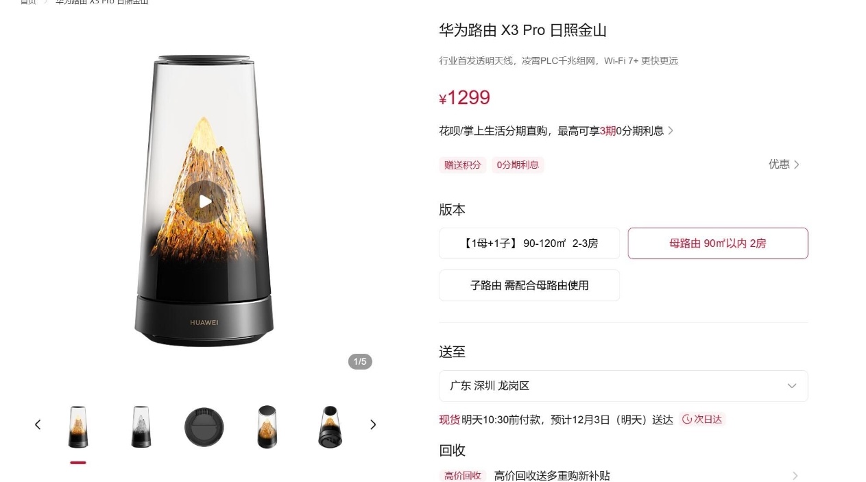 这款兼具美学与实用功能的路由器自推出后迅速走红,母路由售价1299元,一母一子套装为1999元。
