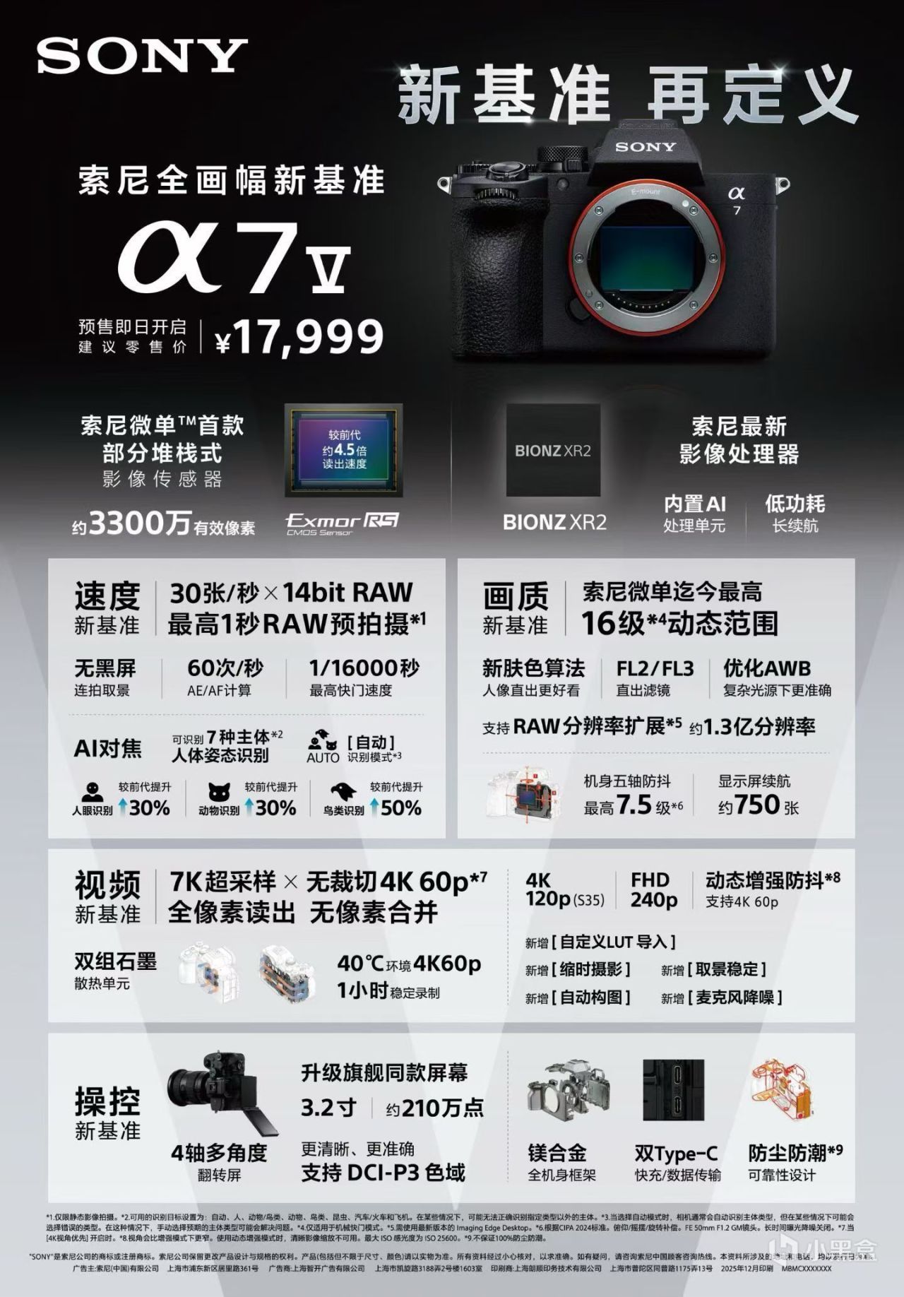索尼 Alpha 7 Ⅴ 正式發佈,機身售價價 17999 元,漲價1000元。