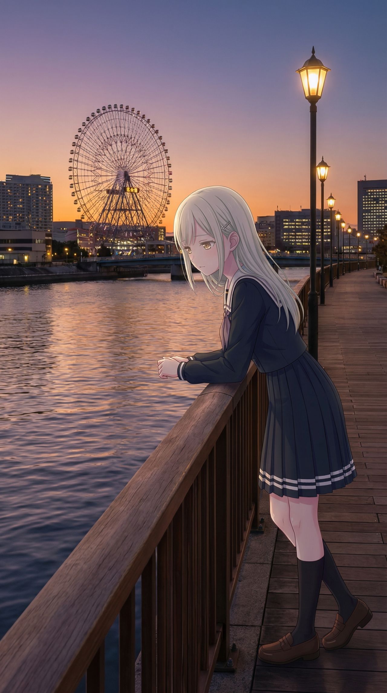 第一段提示词:仿照文段:{基于参考图图一所示的动漫风格女孩生成图片,确保背景是写实风格,只有少女为动漫风格。