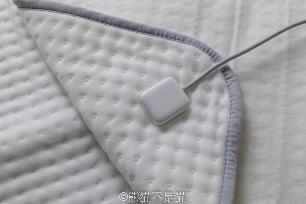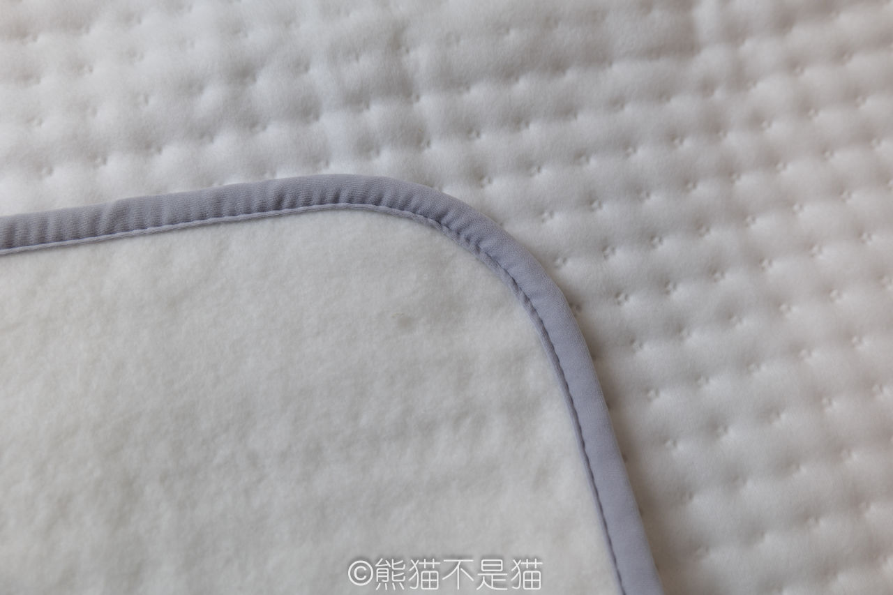 纯白色的毯身,四周做了精致的灰色包边,正面还设计了蜂窝纹理。颜值和细节都非常不错,观感挺好的。